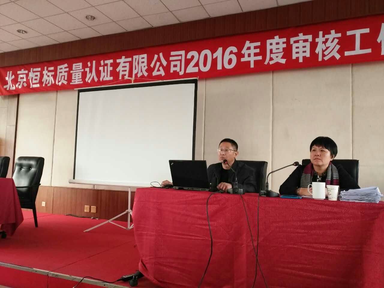 北京恒標質(zhì)量認證有限公司2016年度審核工作會議于21017年3月11日至12日在北京隆重召開。年會上,常務(wù)副總經(jīng)理王立杰對2016年恒標認證公司的工作進行了總結(jié),對2017年的發(fā)展和機遇進行了展望,同時鼓勵大家在新的一年里再接再厲,再創(chuàng)佳績!